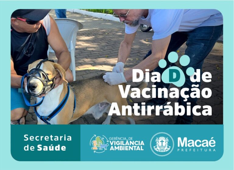 A Secretaria de Saúde de Macaé, por meio da Gerência de Vigilância Ambiental, realiza no sábado (11) o Dia D de vacinação antirrábica para cães