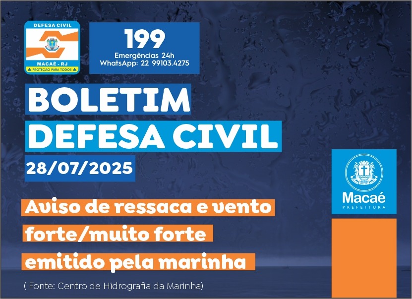 A Secretaria Executiva de Defesa Civil de Macaé recebeu um alerta da Marinha sobre ressaca na manhã desta segunda-feira (28). De acordo com informações do órgão, a previsão é que a de ressaca no município tenha início entre 9h desta terça-feira (29), até às 21h da quinta-feira (31), com ondas com altura de ondas de […]