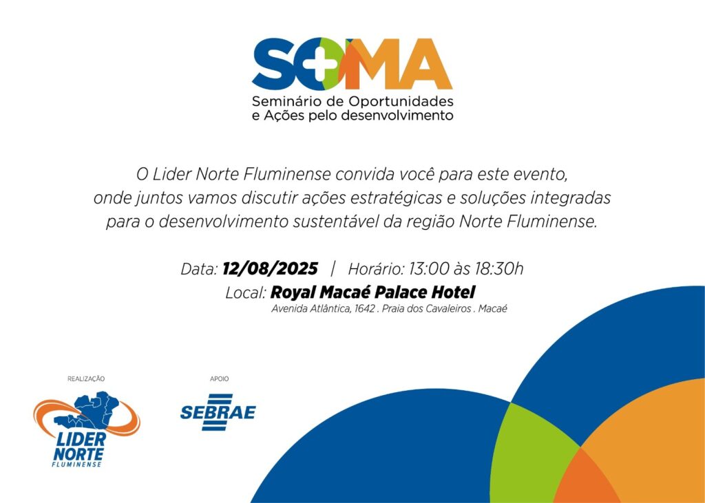 O desenvolvimento regional será tema central do Seminário de Oportunidades e Ações pelo Desenvolvimento do Norte Fluminense (SOMA), que acontece na próxima terça-feira (12), das 13h às 18h30, no Royal Palace Hotel, em Macaé. O evento, promovido pelo Líder Norte Fluminense, com apoio da Prefeitura de Macaé e do Sebrae/RJ, vai reunir prefeitos, especialistas, empreendedores, […]