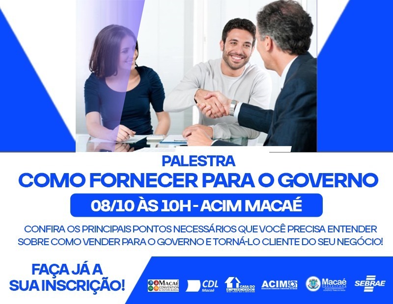 “Como fornecer para o Governo” é o tema da palestra realizada pelo Sebrae na próxima quarta-feira, dia 8 de outubro, às 10h. A iniciativa, que acontece em parceria com a Prefeitura de Macaé, é voltada para empreendedores e empresários interessados em conhecer os principais pontos para vender produtos e serviços ao setor público. As inscrições […]