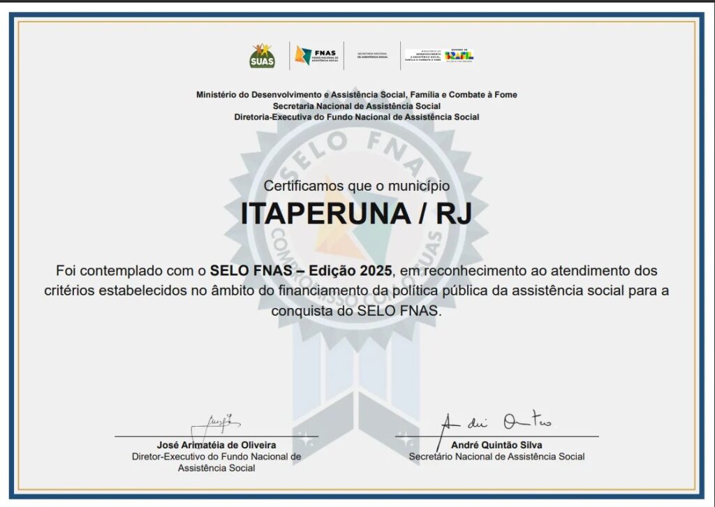 Itaperuna conquista Selo FNAS e é reconhecida por excelência na gestão da assistência social