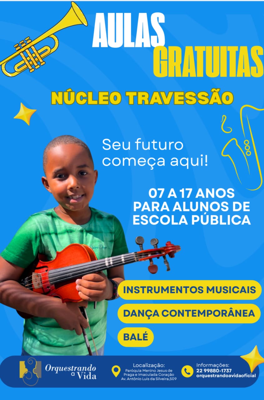 Pais e responsáveis de Custodópolis e Travessão já podem inscrever crianças e adolescentes da rede pública, com até 17 anos, nas atividades da ONG Orquestrando a Vida. O projeto oferece aulas gratuitas de música e outras atividades artísticas.